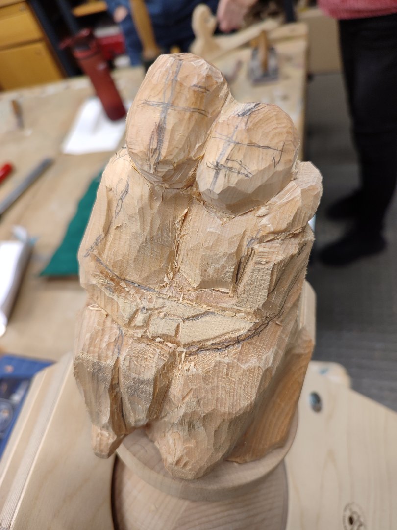 Wollte mich auch mal wieder melden. Ich habe das Hobby nicht aufgegeben. Aber es geht langsam voran. Heute zeige ich euch den aktuellen Fortschritt. Ich traue mich ohne Lehrer nicht weiter. Deswegen werde ich mich an ein einfachereres Projekt wagen bis wieder der Kurs ist. Ein Pilz zum Beispiel oder ein Bäumchen. Und ich möchte mir gerne ein Handschnitzmesser zulegen und natürlich Schnittschutzhandschuhe.