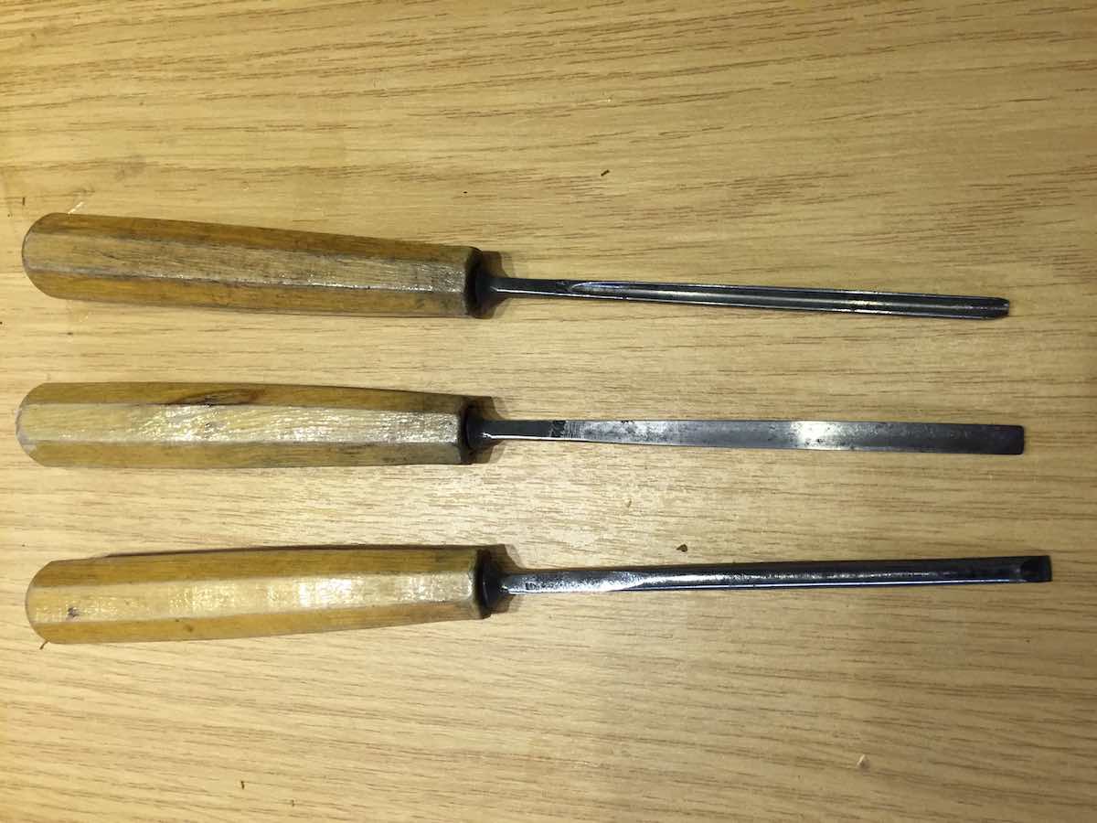 Drei Schnitzeisen, die älter sind als ich.