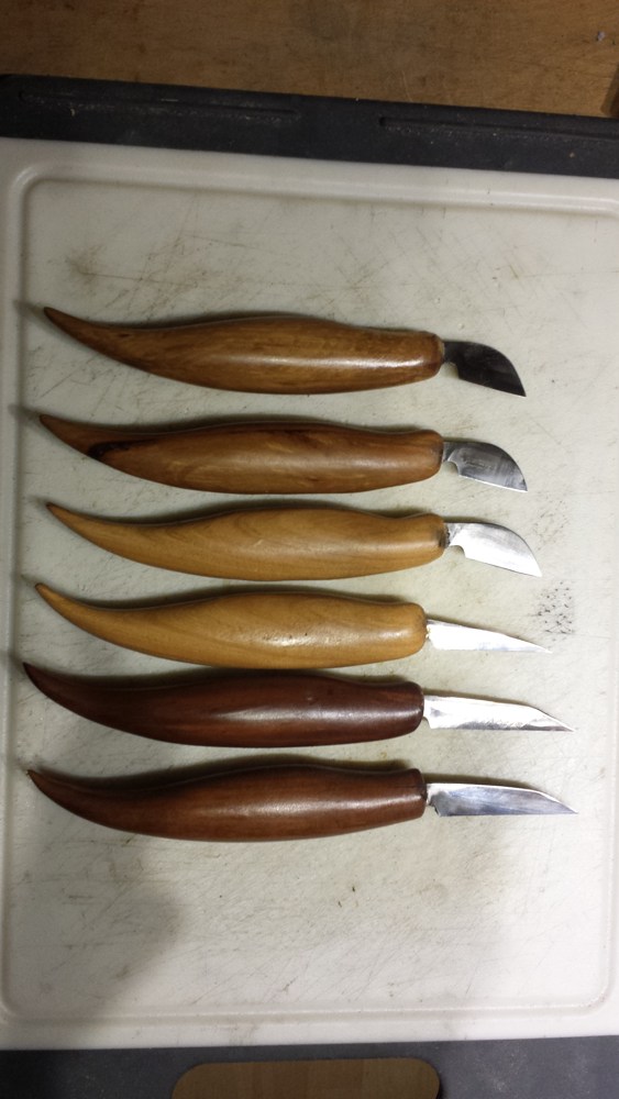Im Foto zu sehen, die ersten drei Messer sind typische Kerbschnitzmesser.