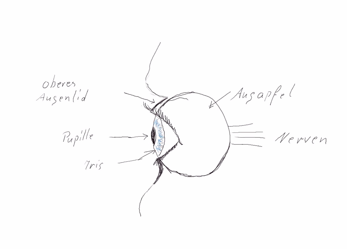 In der Skizze habe ich mal das Auge dargestellt und man sieht auch wie tief der Augapfel im Schädel liegt und wie groß doch das Auge an sich ist.