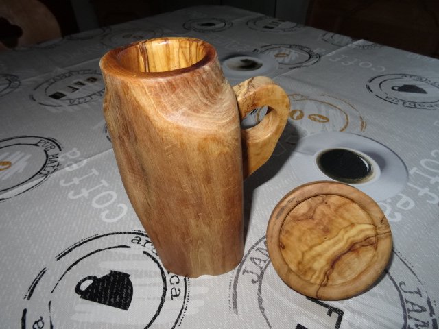 in der Nähe von Rom Olivenhaine - dort hat mal jemand Feuer geschürt und es sind einige Bäume dadurch beschädigt . Für Freundschaftsdienste hat er mir diese Stämme mitgebracht , wenn er sie immer in Italien besucht hat. Ein Gefäß mit abnehmbaren Deckel " natur " - wie gewachsen , habe ich so auf die Schnelle gebastelt und mit Holzöl eingelassen ( man sieht es noch teilweise am Glanz - ist noch nicht ganz trocken )