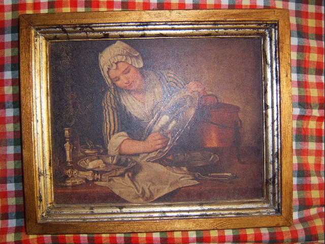 Die Silberputzerin ist ein typisches Gemälde aus der Fläm./holl. Richtung - hier siehst du , sehr viele Farbtöne in's Braune gezogen ( jetzt habe ich schon wieder so einen Ausdruck ! ) Das Bild ist eine kpl. Repro von mir , war mal so eine Idee - hängt bei mir im Hobbyraum herum.