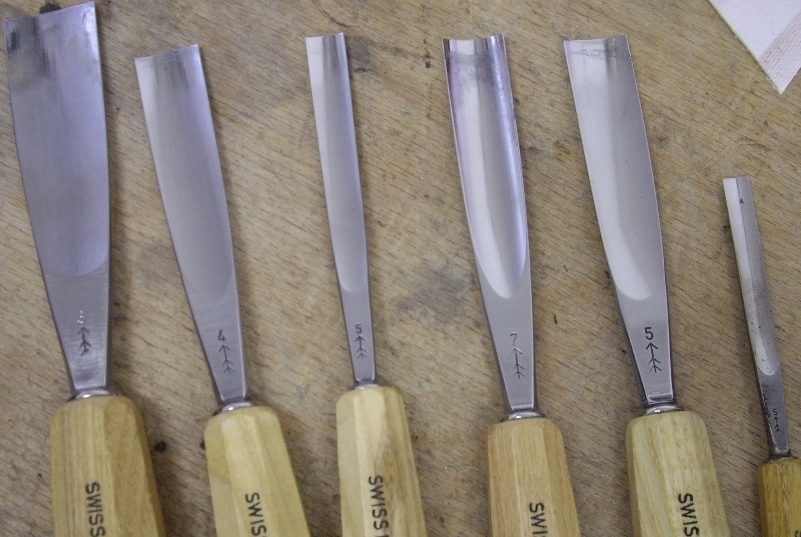 Die Schneide sollte am Anfang ruhig gerade sein. Die Werkzeuge wie ich sie habe sind in erster Linie für die figürliche Schnitzerei ausgelegt.
