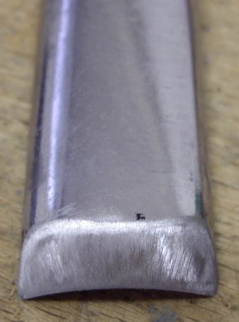 Mein Eisen 7/18 auf dem Bild, ist die Schneide gerade, statt leicht rund vorne. Wenn ich ins Holz schnitze, dann kommt quasi der vorderste Teil von der Klinge zuerst, weil leicht rund?