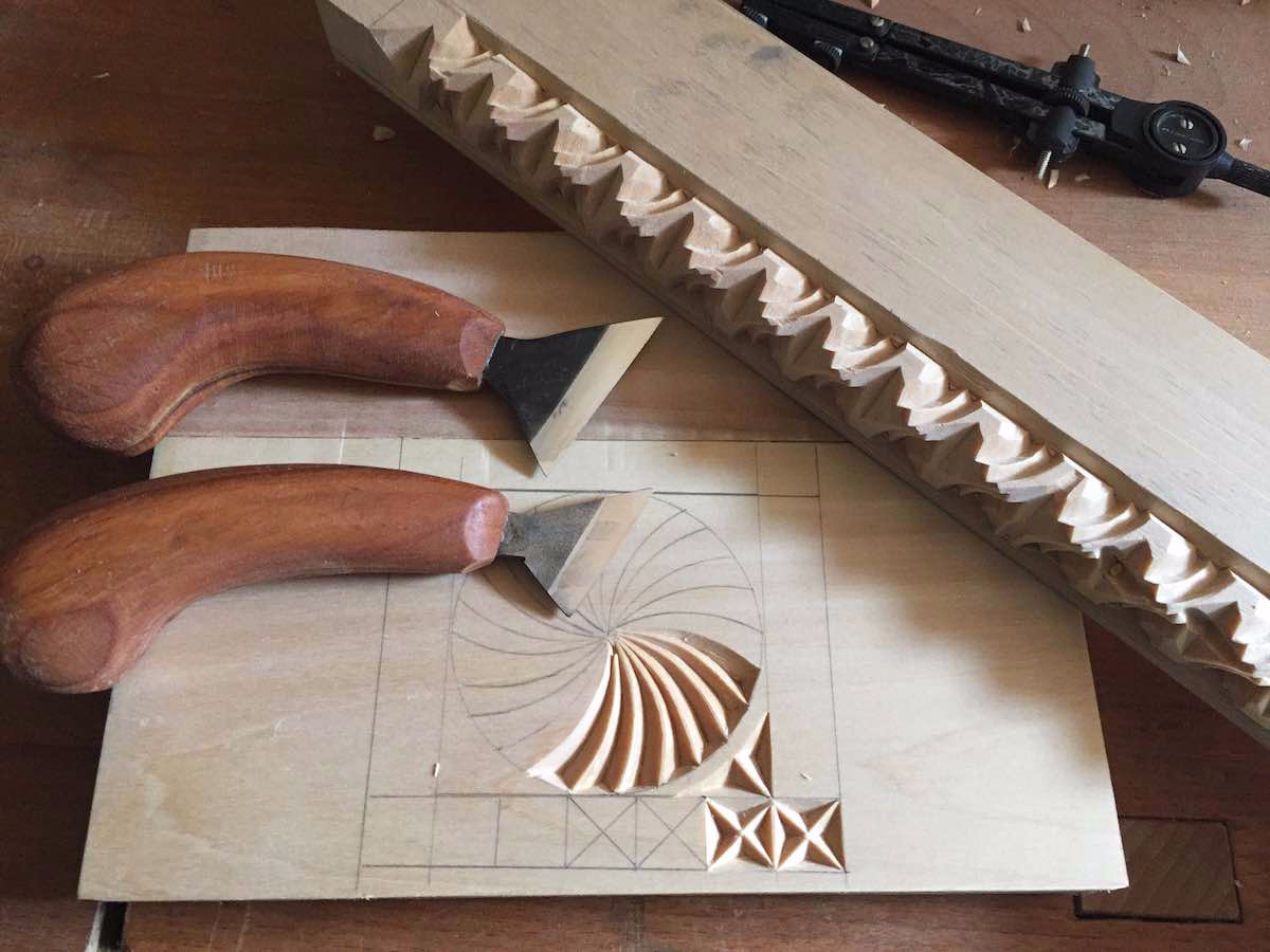 im Rahmen meiner Tests habe ich nun festgestellt, das beide Werkzeuge mit einer recht langgezonenen Fase, die besten Ergebnisse liefern. Es lässt sich wundernar damit arbeiten und die beiden neuen Werkzeuge stellt für mich eine Bereicherung meines bisherigen Bestandes an Messern dar. Auch die beiliegende Zierleiste wurde mit dem Messer gefertigt, wozu jedoch noch weitere Hohleisen zum Einsatz kamen.