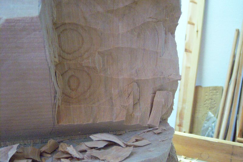 War damals eine interessante Arbeit aus einem Stamm so etwas mit dem Eisen zu schnitzen. Ich habe mir viele Hilfsmittel bauen müssen um das Teil fertig zu bekommen. Angefangen habe ich die Hexe zum Schnitzkurs im Harz. Auch wenn das Endergebnis nicht so Vollkommen ist, war der Weg einfach toll und erhebend.