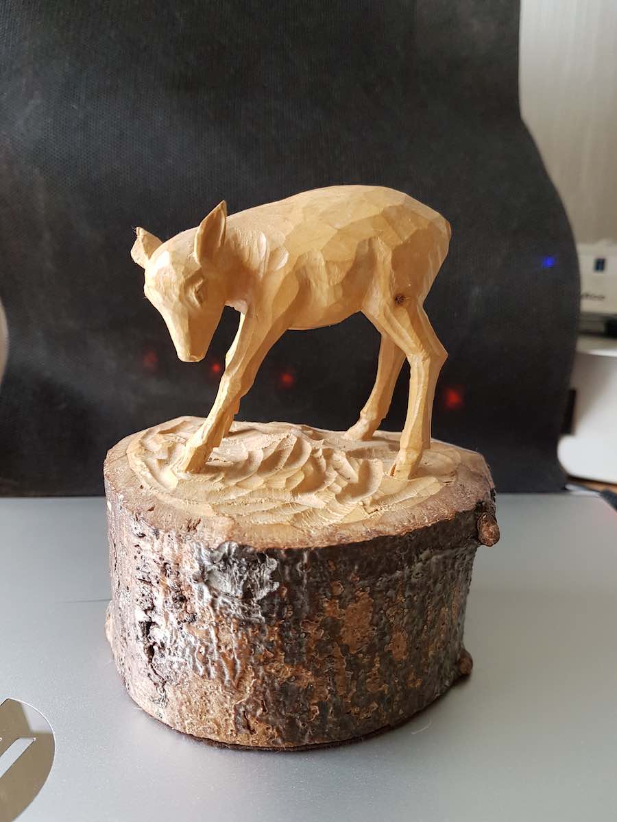 Mit dem heutigen Stand sieht die Sache natürlich anders aus und mit dem gezeigten Reh nicht mehr zu vergleichen, denn ich fühle mich in allen Fassetten die die Schnitzerei zu bieten hat zu Hause. Diese Reh ist für mich eine schöne Erinnerung und zeigt mir zugleich auch die Fehler, die ich zu Beginn so gemacht habe. Das heißt nicht, das man die Beine hoch legen kann, sondern man muss schon am Ball bleiben.
