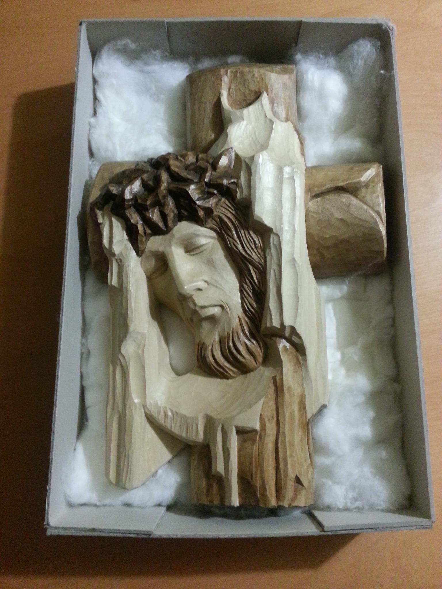 Dein Jesus am Kreuz ist Dir sehr gut gelungen. Mir gefällt besonders mit welch klar erkennbaren Schnitten Du gearbeitest hast. Auch die durchscheinende Farbgebung gefält mir gut.