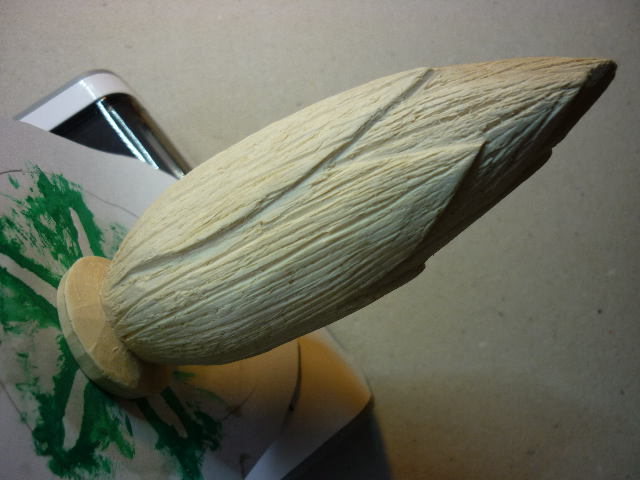 es geht weiter mit meiner "bäumelei". Es soll ein konifärenartiger Baum werden. Wachholder, Säuleneibe oder andere. Das Schnitzen der Grundform war mir ja noch klar, aber ich fand es schwierig dafür eine Oberflächen-Struktur zu finden. Na Ihr seht ja selbst was daraus geworden ist.