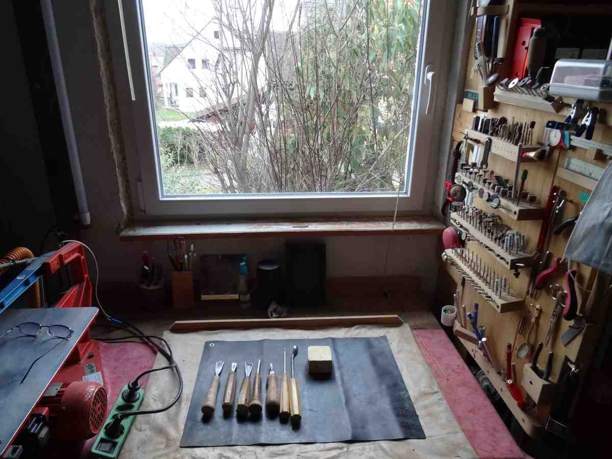 Wie jedes Jahr nutze ich die Tage zwischen den Feiertagen, um meinen Werkzeugen einen neuen Schliff zu geben, um das kommende Jahr mit scharfen Werkzeugen zu starten. Ebenfalls werden alles Werkzeuge mit einem Öllappen abgerieben, um auch bei den weniger genutzten Werkzeugen zu vermeiden, das diese Eisen anlaufen.
