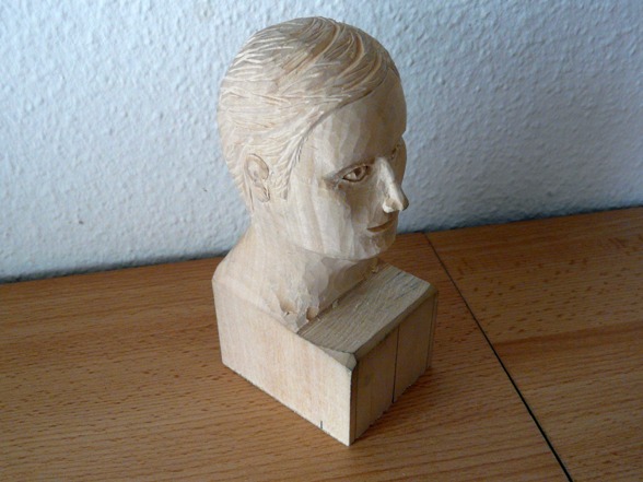 weil mir das Schnitzen von Gesichtern, insbesondere der Augenpartien, einfach nicht richtig gelingen wollte, habe ich mich an das dargestellte Übungsobjekt gewagt. Es besteht aus Lindenholz und der Kopf ohne Sockel ist 10 cm hoch.