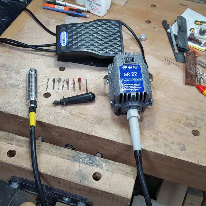 Ich wollte ein Gerät, das nach Möglichkeit kompatibel zu den Foredom Geräten ist, da man eine Menge Zubehör bekommt. Allerdings ist das Original mit fast 400€ ziemlich teuer......