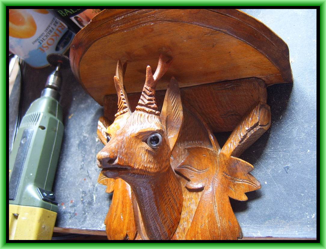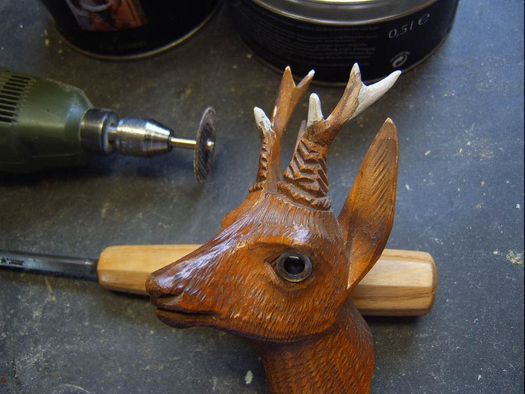 Die Hörnerspitzen sowie die Blätterkanten waren abgebrochen und fehlten . Ich habe mit einem 2 mm Bohrer
