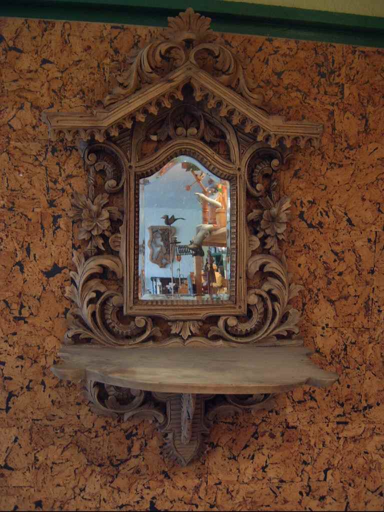 Bei dem Steinbock fehlte ein halbes Horn und der Spiegel mußte aufwendig von abblätternden Schellack gereinigt werden , abgebrochene Teile ersetzen teilweise reparieren , verleimen und zum Schluß wieder aufmöbeln damit das Holz wieder frisch aussieht .