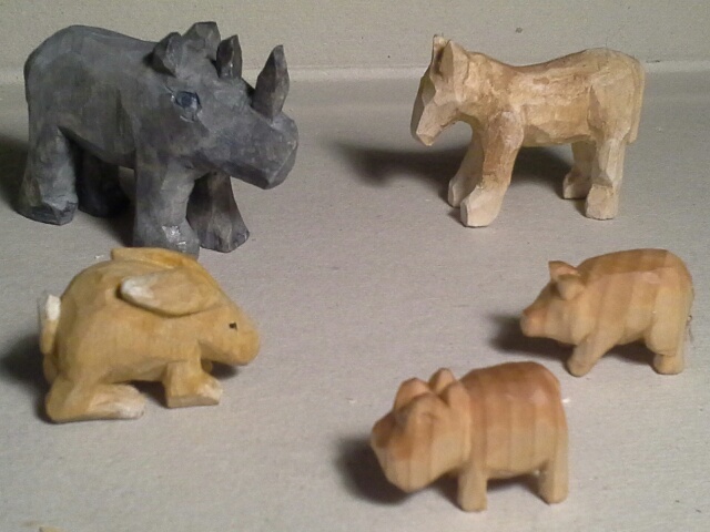 Alle Figuren habe ich direkt aus der Hand geschnitzt , aus Abfallholz - Brettchen .