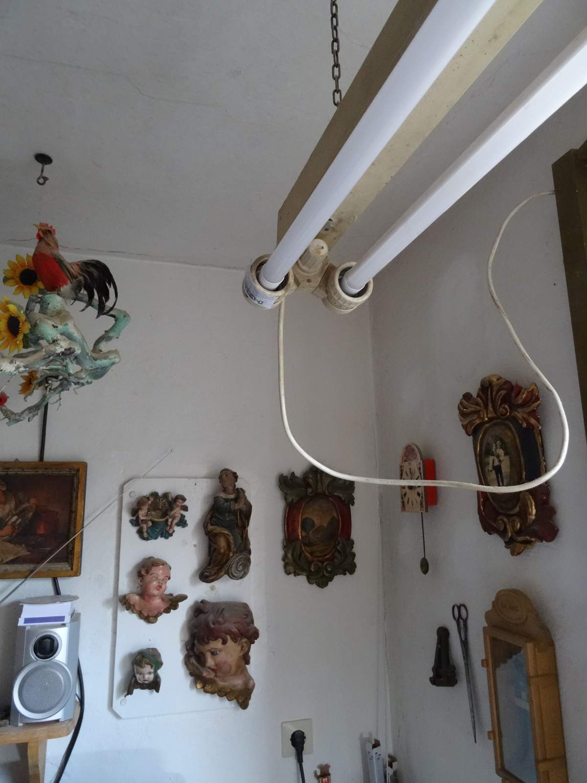 die Beleuchtung in einem relativ dunklem Raum zum Schnitzen ist sehr wichtig, da letztlich durch den Schattenwurf des künstlichen Lichtes Täuschungen beim schnitzen hervorgerufen werden können. Nicht jeder ist in der glücklichen Lage zum Schnitzen das Tageslicht nutzen zu können und man muss sich somit des Kunstlichtes behelfen.