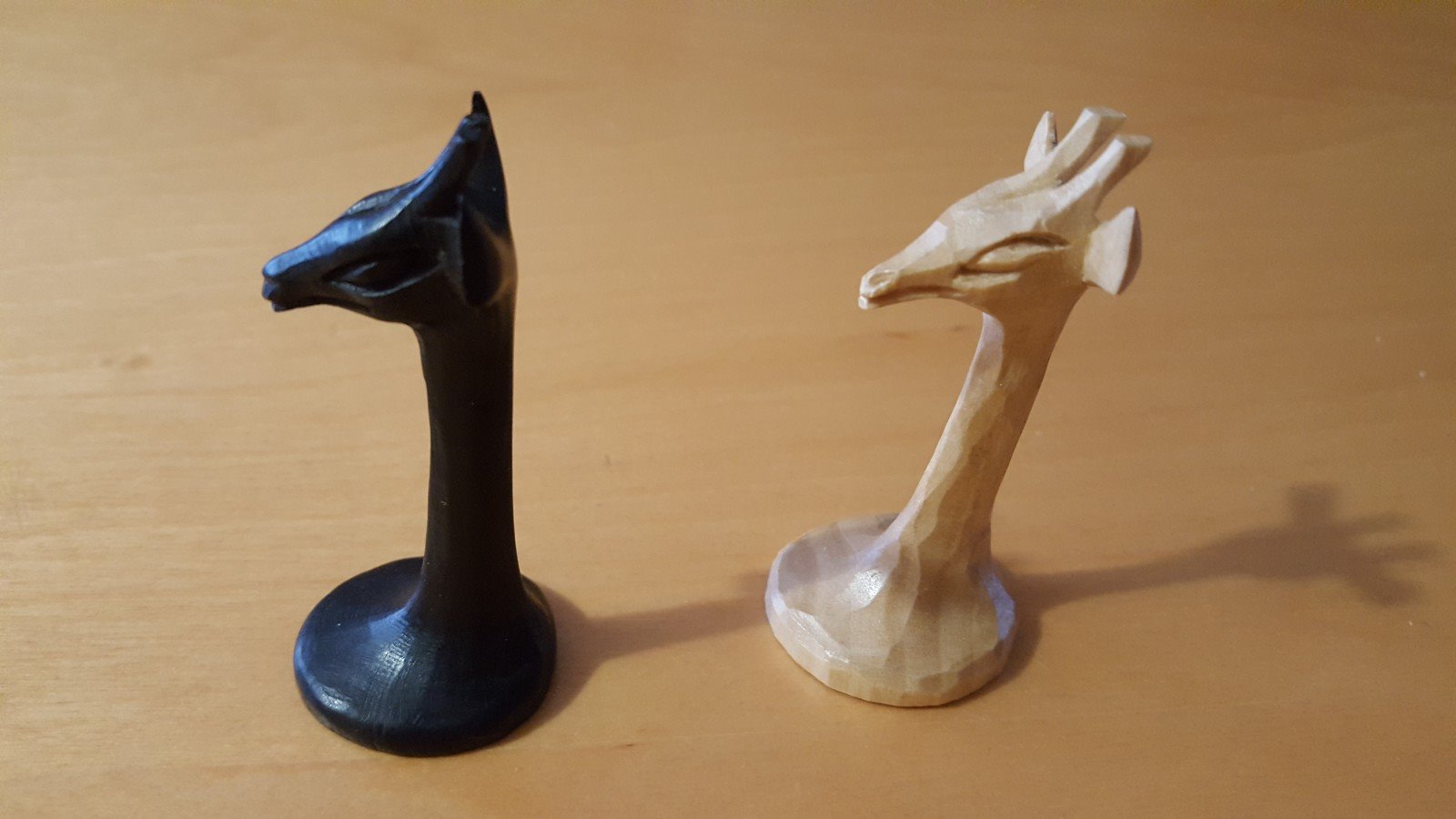 Ich habe für einen Bekannten die weiße Schachfigur nachgeschnitzt, da er diese verloren hatte.