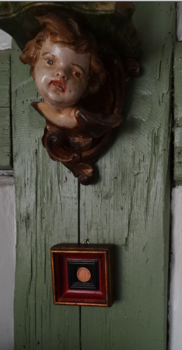 Ein kleines Rähmchen sägen , eine Glasscheibe von hinten einsetzen und von vorne dann den passenden " Pfennig "