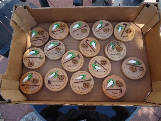 ja , der große Schnitzkünstler bin ich nicht so , damit habe ich auch recht spät mit dem Hobby angefangen und nachdem ich jahrelang mit der Elektrotechnik und anderen speziellen Aufgaben unterwegs war - also abends auch nicht zuhause - da gab es dann auch nicht die Möglichkeiten dazu . Inzwischen freut es mich aber , daß meine kleinen Kunstwerke - Bierkrugdeckel / Spazierstöcke und sonstiges - bereits in vielen Ländern gut angekommen sind .