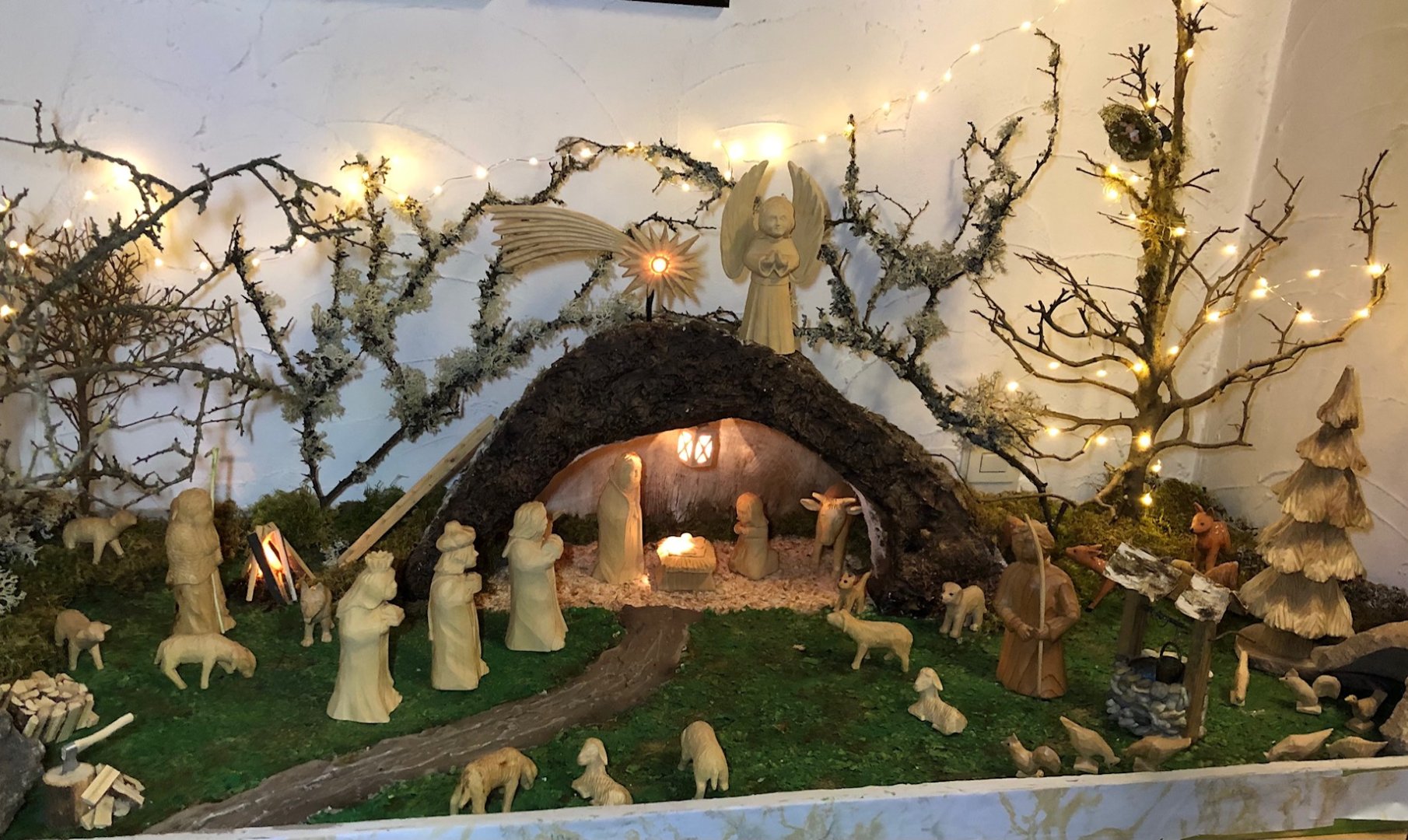 Mein Krippenbau ist aus einen hohlen Baumstamm entstanden.