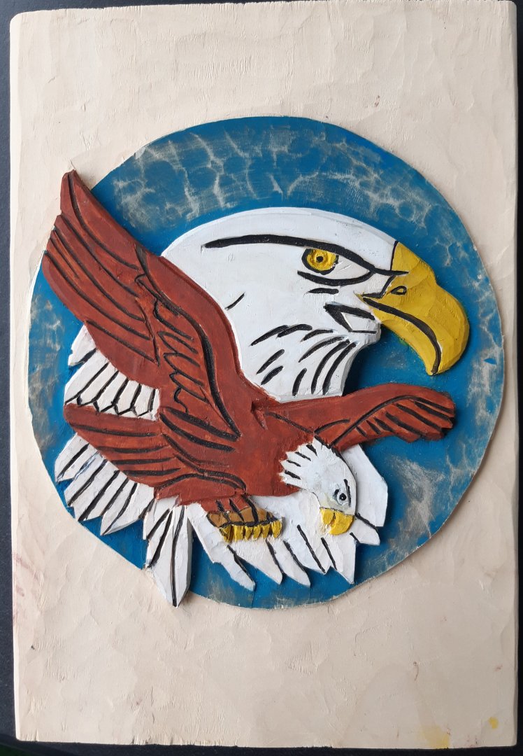 im unteren Bild hast du den Hintergrund als Kreis blau gemacht und auch gewischt, so das leichte Wolken entstehen. Ich würde die gleiche Farbe etwas heller und Technik auf dem oberen Bild anwenden. Denn du hast einen fliegenden Adler im Motiv und der hüpft da nicht auf der Erde rum.