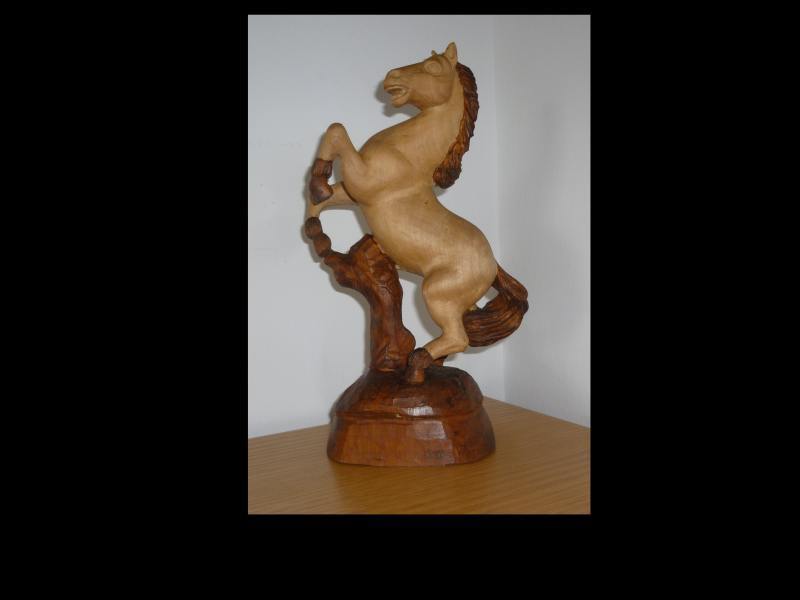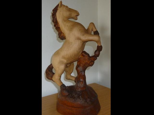 so eins habe ich auch mal in etwas kleiner geschnitzt. Es macht viel aus, das Pferd zweifarbig zu gestalten, weil die Form so doch noch mehr betont wird.
