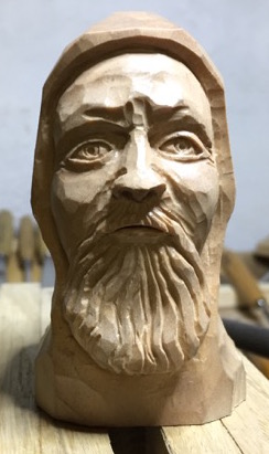 ich besitze ein paar Bücher, als auch einige Videos von Ian Norbury, die ich uneingeschränkt empfehlen kann. Diese Kopfstudie hat nicht unbedingt etwas mit ihm zu tun. Wenngleich ich mich ein wenig bei der Ausarbeitung der Augen nach ihm gerichtet habe. So habe ich die Iris mit einem 9er Eisen angeschnitten (leider hatte ich nur ein 9/2 und hätte ein 9/3 gebraucht - so ist die Iris nicht exakt rund, was sich aufgrund mehrerer Versuchen als unbedingt wichtig herausgestellt hat) und anschließen eine Linse ausgearbeitet. Die Pupille habe ich zuerst mit einem kleinen Hohleisen ausgeschnitten. Das hat nicht so recht funktioniert, da ich die entsprechende Größe nicht besitze. Ich weiß, das man vieles auch mit dem hinbekommen kann, was man zur Verfügung hat. Bei diesen doch recht filigranen Sachen wäre es aber eine unheimliche Erleichterung gewesen den richtigen Stich und Breite zur Verfügung zu haben. Ehrlich gesagt habe ich das dies zum ersten mal so empfunden. Anschließend habe ich, so wie Ian Norbury das macht, die Pupille mit einem kleinem runden Fräser mit dem Dremel ganz leicht nachgearbeitet. Ich bin zwar nicht so richtig Fan dieser Vorgehensweise aber man muss es ja mal ausprobieren. Das geht ganz gut, wenngleich hier ein "Diamantschleifer" (weiß nicht wie das richtig heißt) besser ist, da es eine glattere Oberfläche hinterlässt (hatte ich auch nicht zur Hand). Wenn man das richtige Eisen hat, ist das aber gar nicht notwendig. Dann kann man die Pupille auch sehr gut ausschneiden.
