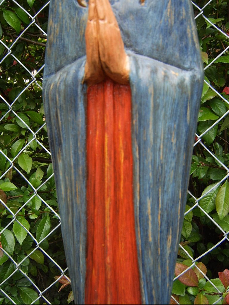 bei solchen schlecht gefrästen Rohlingen kommt man oftmals am besten dabei weg, das komplette Teil, wie hier bei dieser Madonna das Gesicht über die ganze Länge wegzuschneiden und mit einem neuen Stück Holz ein frisches Gesicht zu machen. Man muss nur beim Aufsetzen des Holzes sauber arbeiten. Rohlingsfräser sind oftmals durch die Größen der Rohlinge gezwungen, Hölzer miteinander zu verbinden und das geht auch. Man sollte jedoch darauf achten, das so eine Holzverbindung nicht nebeneinander gemacht wird, sonst hätte eventuell diese Madonna eine Leimnaht mitten durch das Gesicht.
