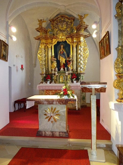 Der Altar wurde von einen Kirchenmaler bemalt und vergoldet.