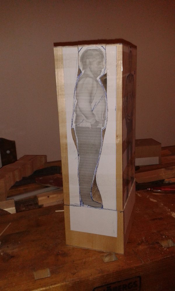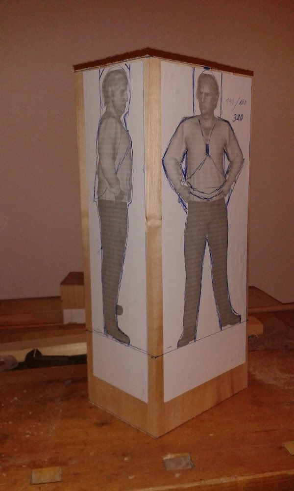 Wer noch nicht so weit ist wie du Klaus, dem empfehle ich so eine Figur nur vom Seitenprofil zuzuschneiden. Sollte innerhalb des Kopfes mal was daneben gehen, hat man immer noch die Möglichkeit die gesamte Figur weiter nach hinten zu setzen.