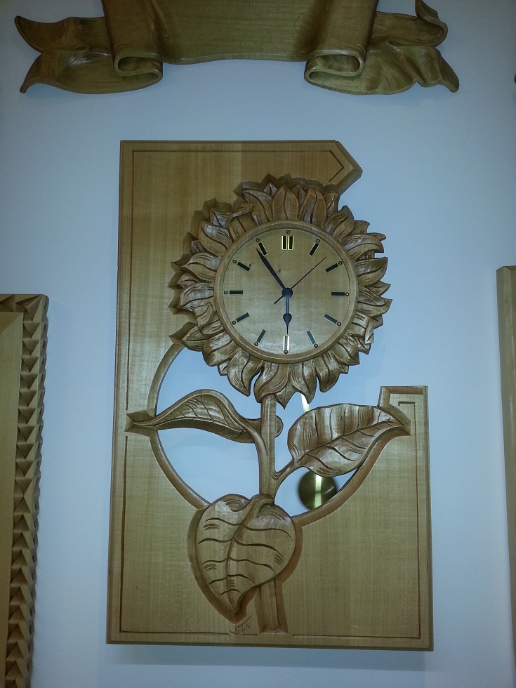 Ich wollte ein Relief schnitzen. Eine Sonnenblumenuhr.
