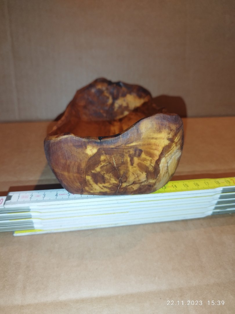 ich möchte mit euch gerne meine Schalen zeigen. Es sind meine ersten schnitz versuche. Bisher konnte ich vier Stück fertigstellen. Wobei fertig sind meine Sachen nie da ich immer einen Makel an meiner Arbeit entdecke, aber das ist ein anderes Thema.