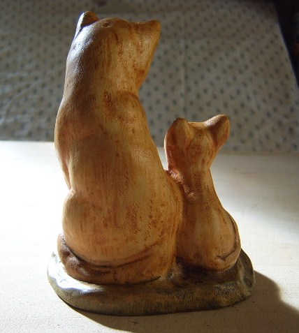 ( Warum " heiße Mietzen" - sie sind aus einem Brennholzscheit geschnitzt. )