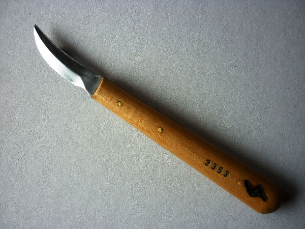 ein Messer mit zwei beidseitig gebogenen Schneiden, mit Innen- und Außenkurve hab ich mal von Kirschen gekauft, aber nie benutzt. Diese Klingenform wurde als Kerbschnitt-Messer angeboten. Messer 3353.
