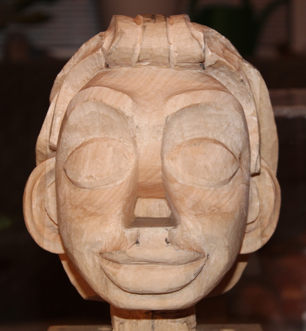 Das Modell war eigentlich nicht geplant, aber als ich die Skizze auf den verleimten Lindenblock übertragen wollte kamen mir starke Zweifel das ich es auf Anhieb schaffe einen 3D Kopf zu schnitzen der den zwei Ansichten auch nur nahe kommt. Ich bin im nachhinein froh das meine Zweifel gesiegt haben und erst das Modell aus Knet gemacht habe was schon schwer genug war, aber Knet verzeiht mehr als Holz. Es hat mir die Arbeit am Holz wesentlich erleichtert und mir mehr Selbstsicherheit gegeben.