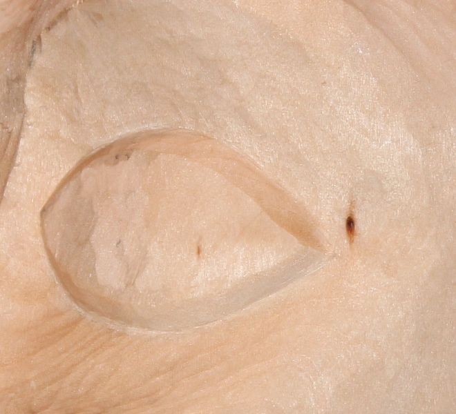 Ich hab jetzt die Augen so gut es ging korrigiert ohne das sie zu klein werden. Den Umriss vom ilnken Auge mit Umfeld hab ich soweit mal fertig geschnitzt und hab dazu eine Frage an Euch, genügt es so oder sind zu viele Schnitzmarken vorhanden bzw. nicht sauber genug ausgeschnitzt ? Da die Kolorierung später so sein soll das die Maserung noch gut sichtbar ist und ich nur Erfahrung im beizen von geschliffenen Oberflächen ( früher Treppenbau ) habe.