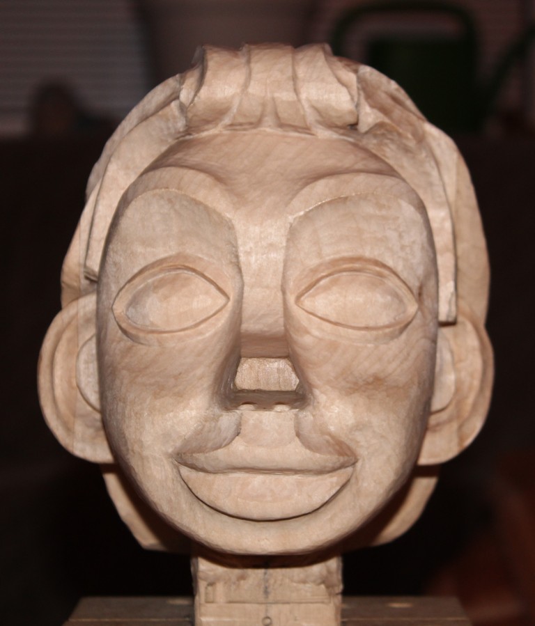 Das Gesicht soll einen ganz leichten hellen Braunton erhalten und die Maserung gut sichtbar sein, die Haare eher deckend schokoladenbraun werden.