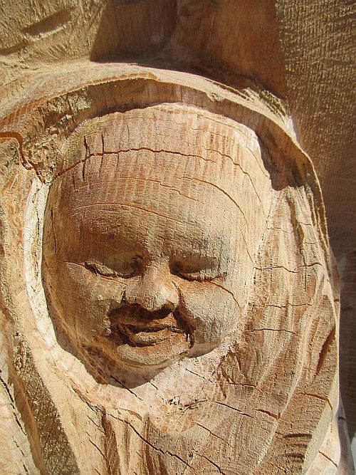 Die Heilige Familie ist vom Dieter Krüger gesägt und steht in Wiehe vor der Kirche.