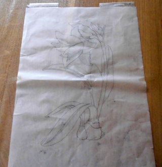 das ist eine Amaryllis und ja ich hatte eine Zeichnung allerdings weiß ich nicht ob ich das Bild hier einstellen darf wohl eher nicht ich zeige hier meine Pauszeichnung die ich auf das Holz übertragen habe.