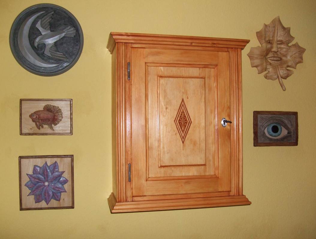 Dein Medizinschränckchen mit der Schnitzerei sieht sehr gut aus, Gefällt mir gut.