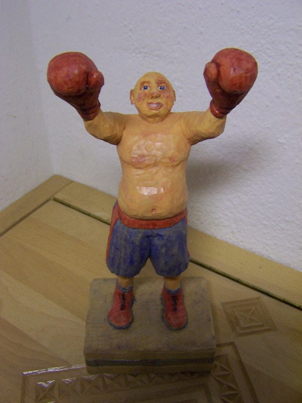 Dein Boxer ist wunderbar geworden! Das er trotz seines dicken Bauches gesiegt hat, muß ihn gleich doppelt gefreut haben. Sehr lebensecht getroffen. Prima Du wirst immer besser.