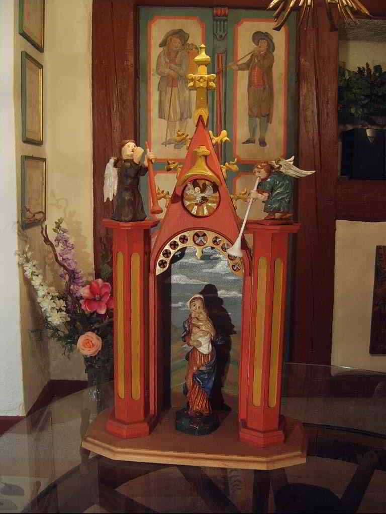 Tonfigur nachgeschnitzt. Sonst ist die Bemalung auch nur vorgrundiert. Der Hintergrund ist bemalt - ist unser Hausberg - allerdings hier nicht gut zu erkennen.