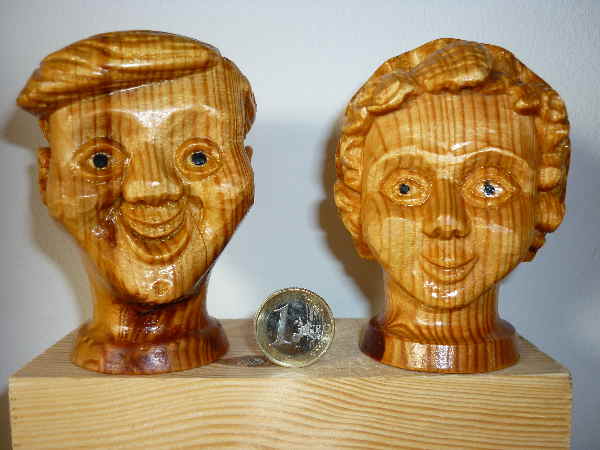 beide Köpfe sind Dir wieder sehr gut gelungen. Für mich ist auch interessant, was Du über die Größenanpassung geschrieben hast. Ich habe mal versucht das Bild zu vergrößern um die Tabelle lesen zu können. Aber leider vergebens, vielleicht ist es so gewollt? Was Du über das Schnitzen von Kiefernholz geschrieben hast, kann ich voll und ganz bestätigen. Es läßt sich relativ leicht schnitzen, aber bei den Jahresringen muß man den Druck auf das Schnitzwerkzeug erhöhen. Man muß sich mehr konzentrieren um den Übergang weich/hart hinzukriegen. Aber das ist Übungssache. Ich bin der Meinung das Kiefernholz hat es allein schon wegen der schönen Maserung verdient als Schnitzholz verwendet zu werden.
