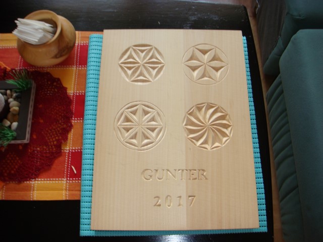 Die Rosette ist natürlich auch ganz toll geworden. Auch wenn dir bei der Schrift ein Freund behilflich war, ist das vollkommen in Ordnung, denn es braucht alles seine Zeit und mit dem Schnitzen von Schriften kann man sich zu einem späteren Zeitpunkt befassen.