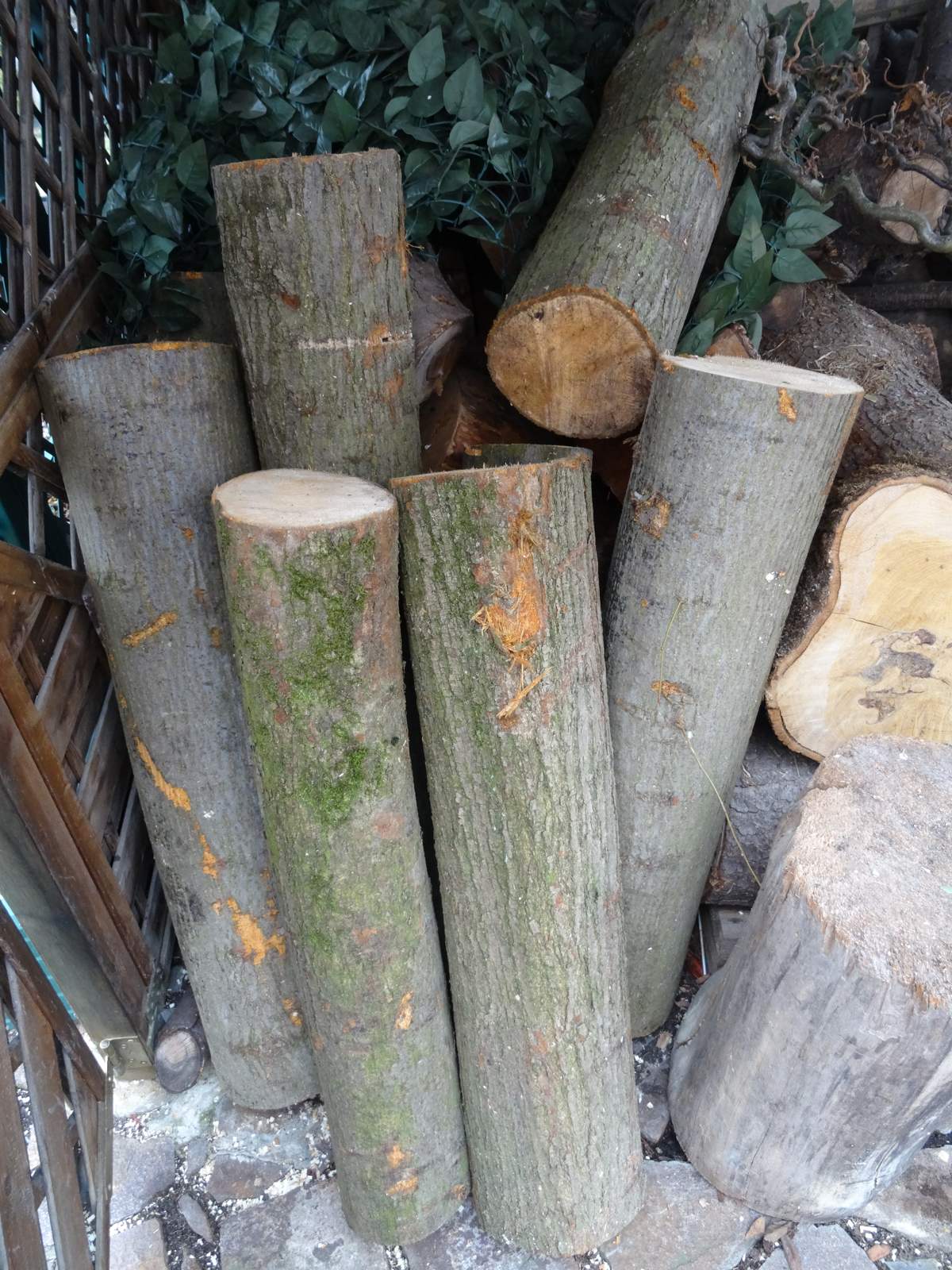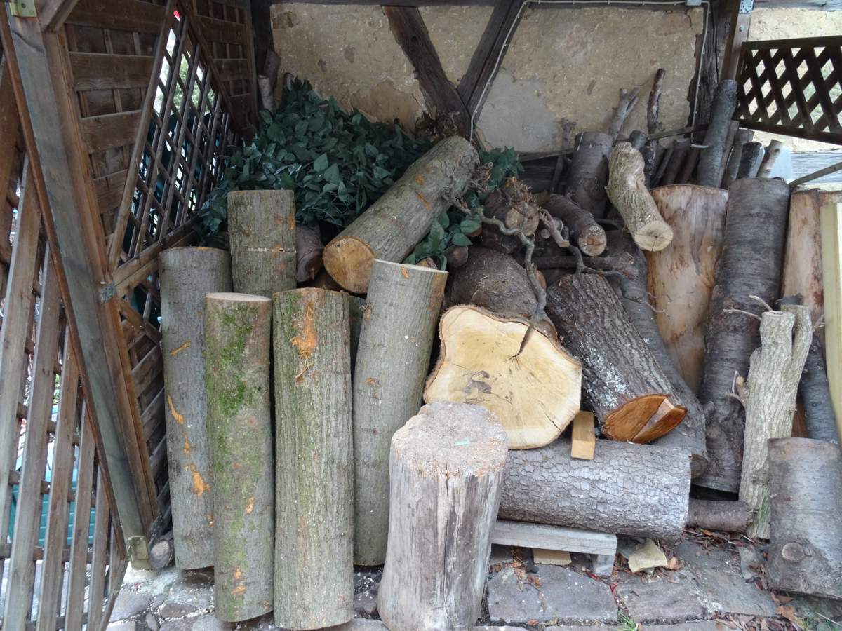 schön , wenn man so einen aktiven Schwiegersohn hat , der während der Abwesentheit 8 Stämme Lindenholz anliefert. Jetzt liegt in der Schnitzholzecke inzwischen Zedernholz , Linde , Kastanie , Kirsche , Zwetschge und Holunder - da geht mir die Arbeit nicht aus .