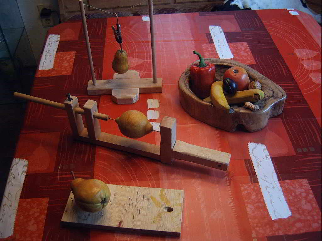 da wir gerade bei den Hilfsmitteln wie die Schnitzhalterung sind , möchte ich euch Halterungen und Ablagen