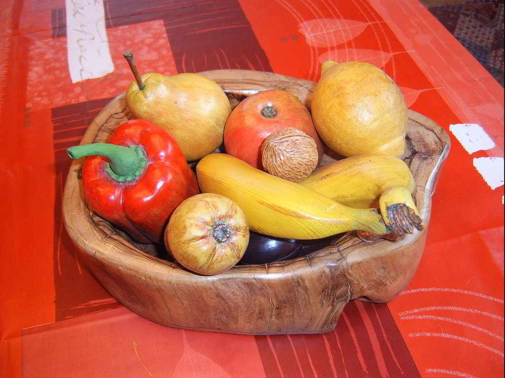 damit ja kein Zweifel aufkommt - alle Früchte einschließlich die Wal.- und Erdnuß sind echt aus Holz geschnitzt.