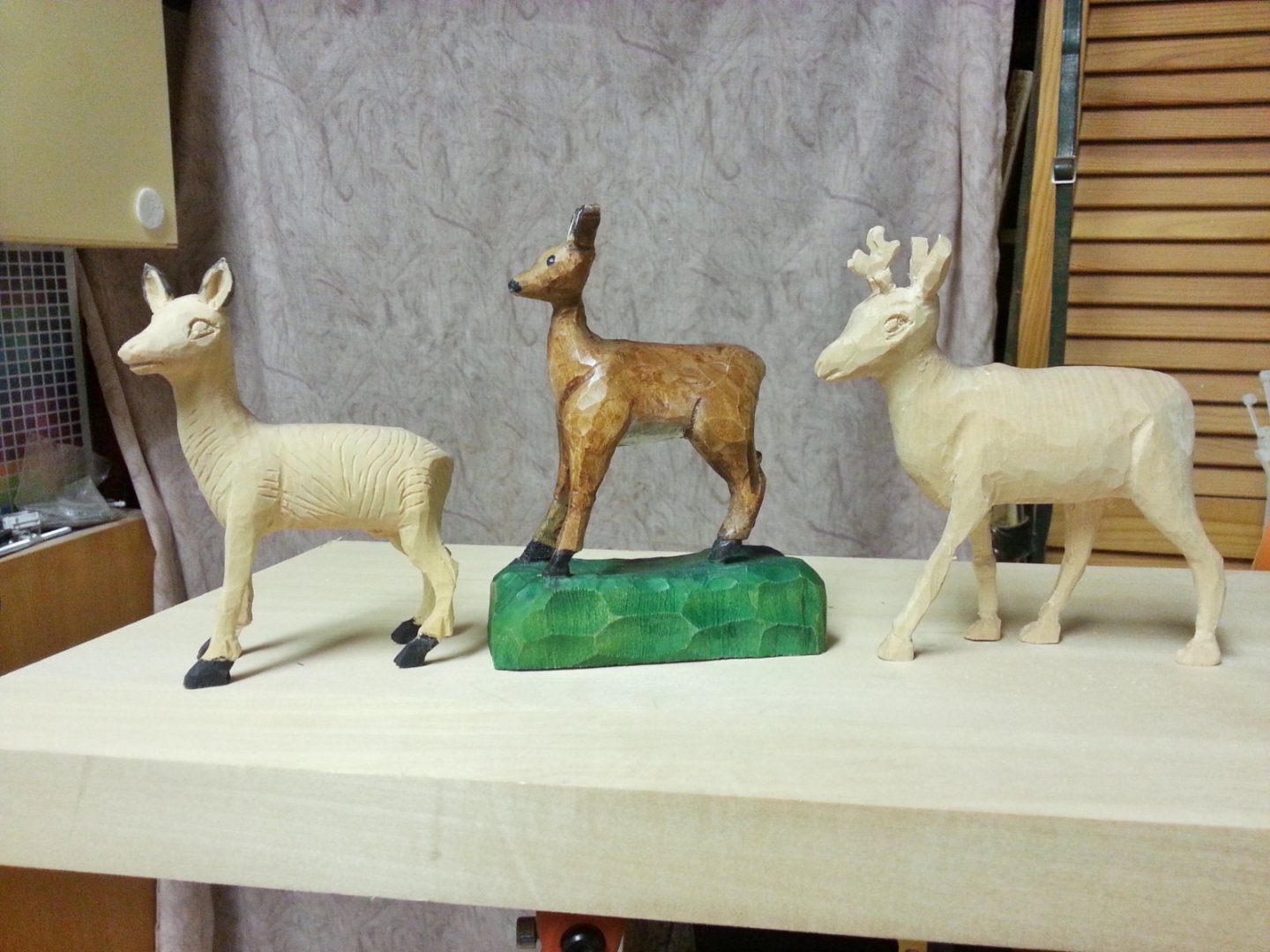 Hallo Schnitzfreunde, hier mal alle drei Rehe an denen ich mich probiert habe. Farblich habe ich jetzt nur eins vorzustellen. Das soll aber so nicht bleiben. Nicht vergessen möchte ich mich bei Hans zu bedanken der mir viele Tipps zur farblichen gestalten mit Ölfarbe gegeben hat.