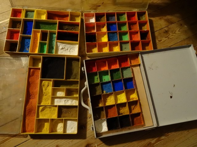 da kann man investieren , nach meiner Vorstellung einfach sehr teuer . Ich arbeite ja seit Jahren schon mit dieser Technik der Kirchenmaler und mische meine Pigment -Farben ( Pulverfarben )mit unterschiedlichen Mitteln an ; somit kann ich Acryl .- oder Ölfarben und auch Wachsfarben genau in den passenden Tönen mischen , so wie ich sie z. B.in verschiedenen Glanzrichtungen benötige . Das ist für mich sehr günstig , vorallem ich bei Restaurationen /