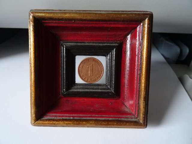 Ein kleines Rähmchen sägen , eine Glasscheibe von hinten einsetzen und von vorne dann den passenden " Pfennig "
